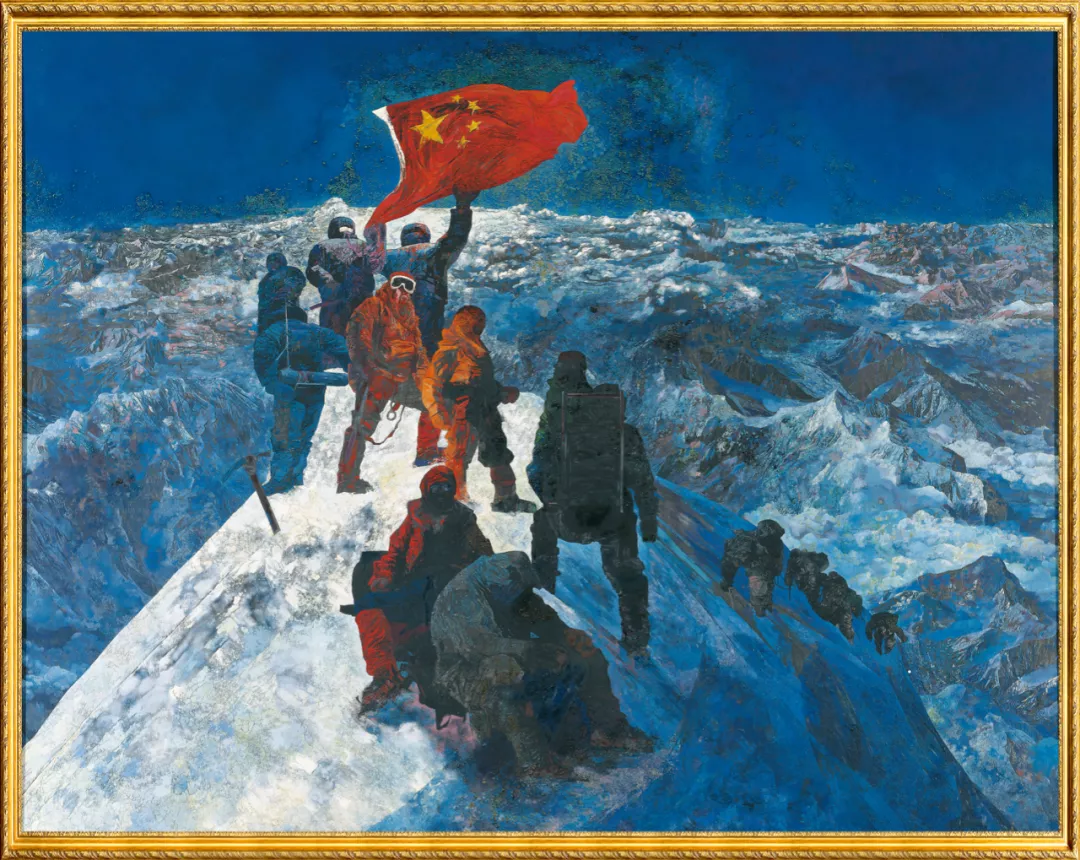 2009年,画家冯杰以中国登山队员勇于攀登、不惧艰险的攀登精神作为主题,创作了油画作品《征服珠峰》。